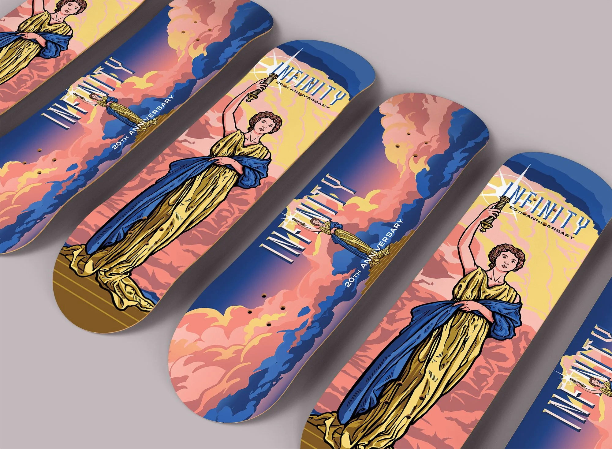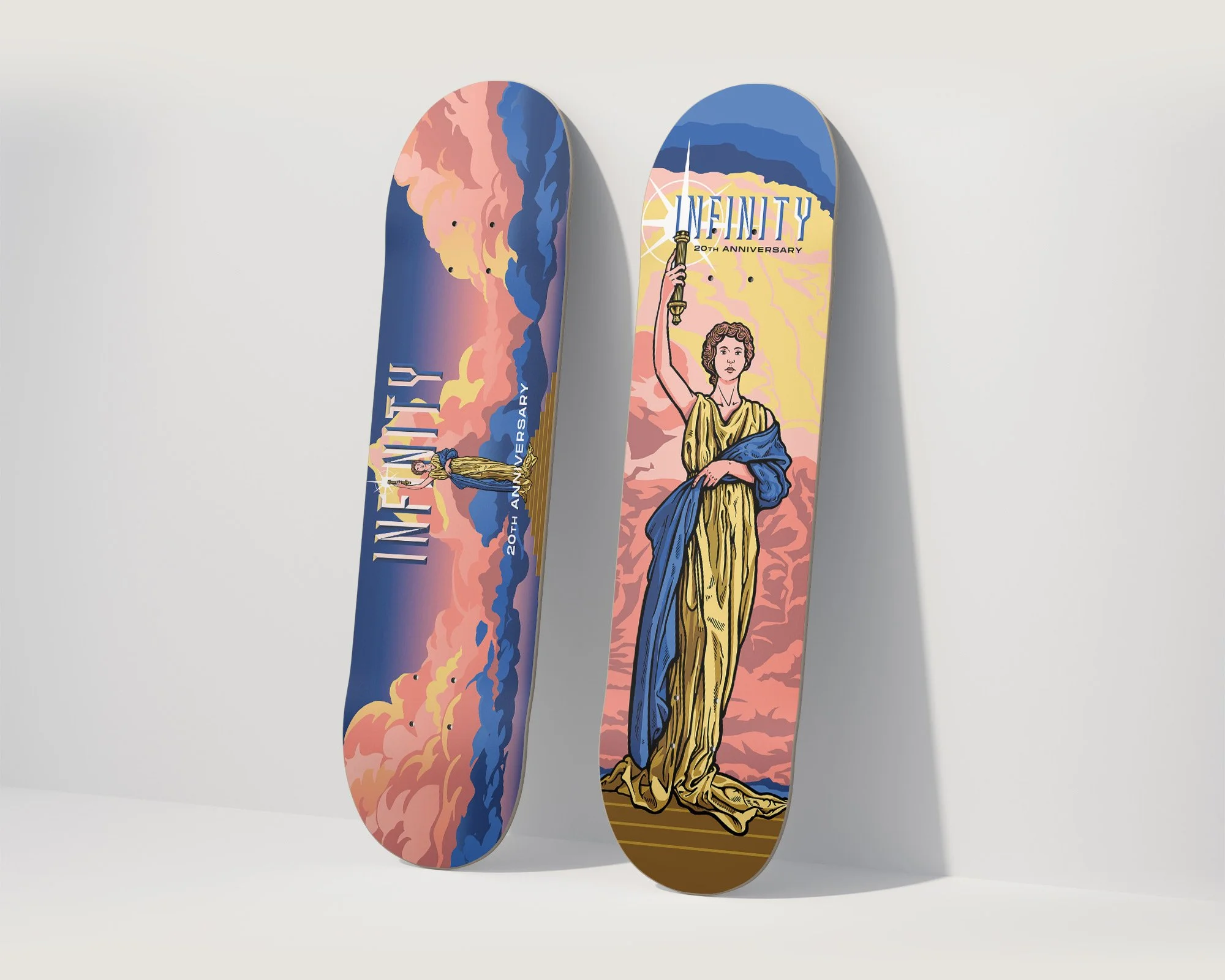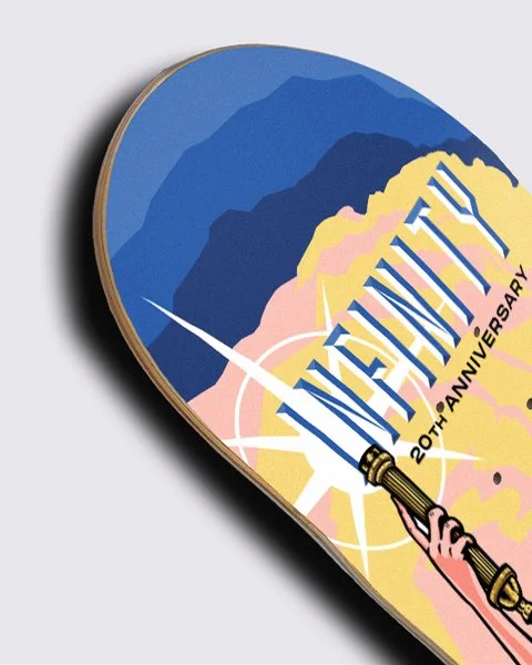 This graphic was for Infinity Skate Shop’s 20th anniversary. It's my take of the Columbia Pictures “Torch Lady”, done in two versions: one vertical, one horizontal. I used hand-drawn linework with a modern polish, made to honor a shop that’s been killing it in the St. Louis skate scene for 20 years.